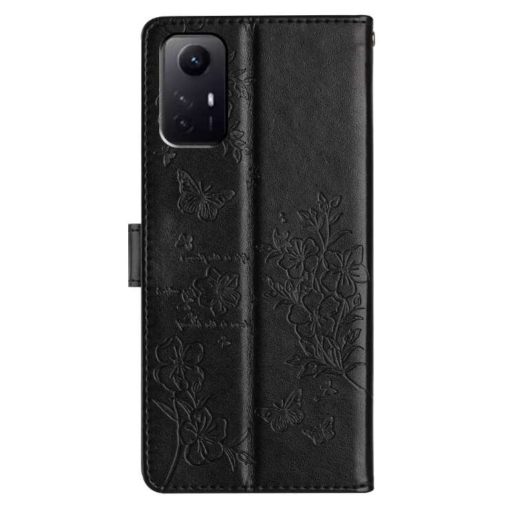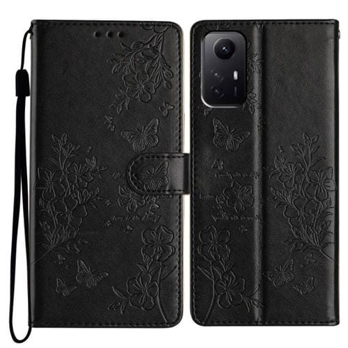 Para Redmi Note 12S Funda de Cuero para Teléfono con Mariposas y Flores (Negro)