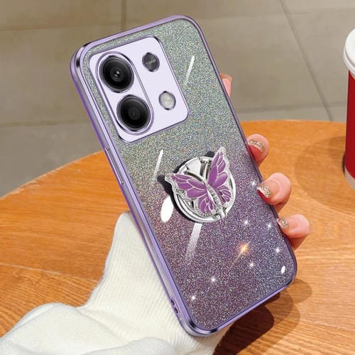 Para Redmi Note 13 Funda para Teléfono de TPU con Soporte de Mariposa con Brillo Degradado Plateado (Púrpura)