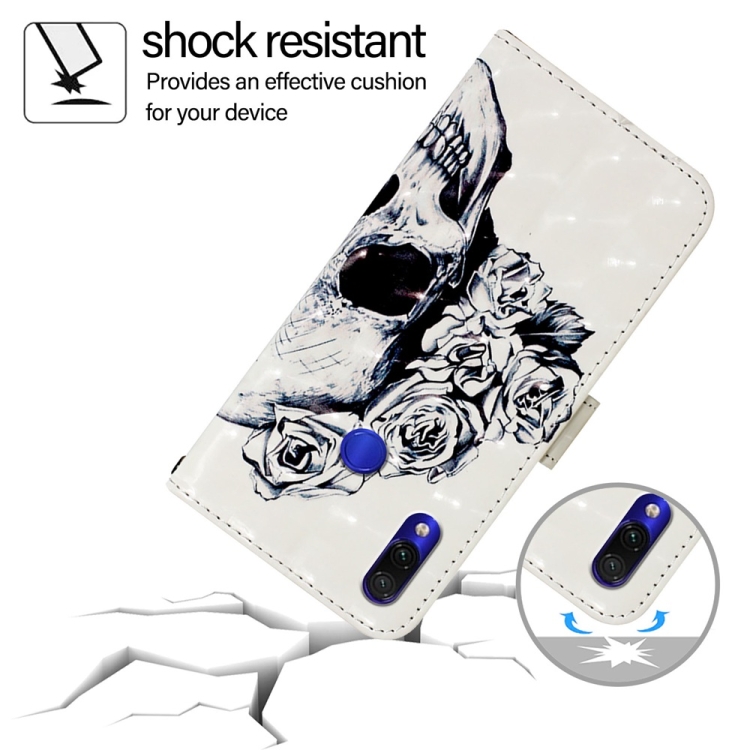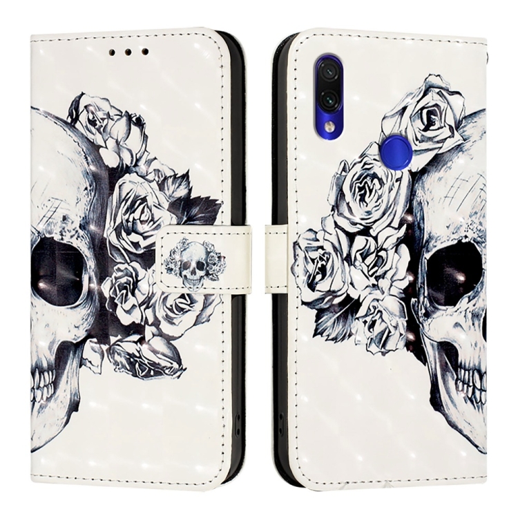 Para Redmi Note 7 / Note 7 Pro / Note 7S Funda para Teléfono de Cuero con Tapa Horizontal con Pintura 3D (Calavera)