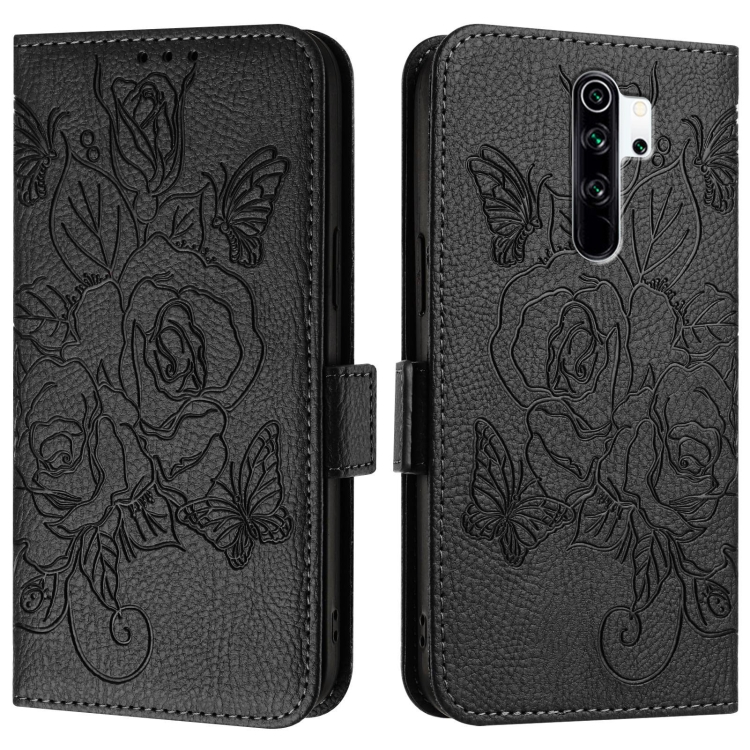 Para Redmi Note 8 Pro Funda de Teléfono de Cuero Antirrobo Rfid con Relieve Rosa (Negro)