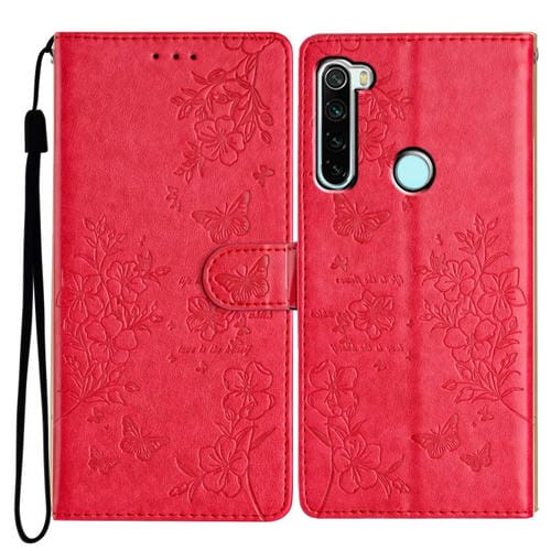 Para Redmi Note 8T Funda de Cuero para Teléfono con Mariposas y Flores (Rojo)