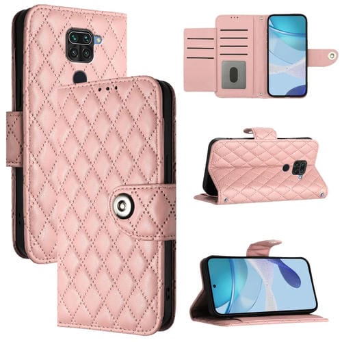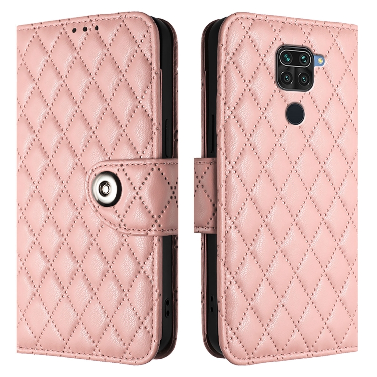Para Redmi Note 9 Global / 10X 4G Funda para Teléfono con Tapa de Cuero con Textura Rómbica y Cordón (Rosa Coral)