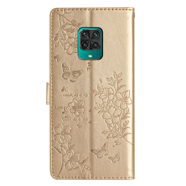 Para Redmi Note 9 Pro Funda de Cuero para Teléfono con Mariposas y Flores (Dorado)