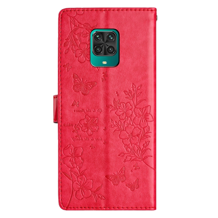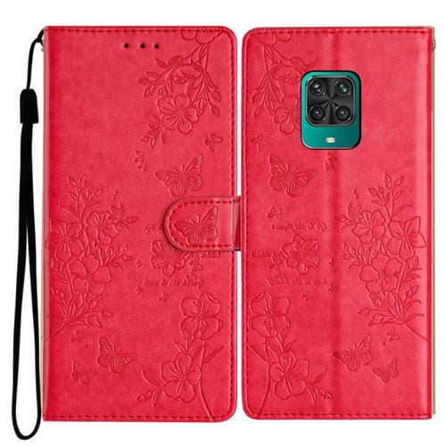 Para Redmi Note 9 Pro Funda de Cuero para Teléfono con Mariposas y Flores (Rojo)