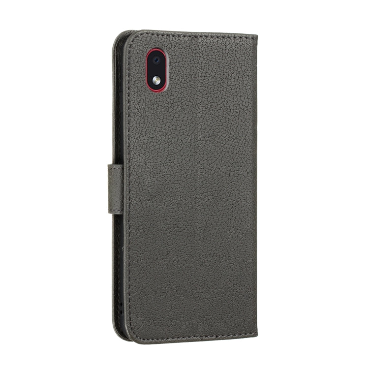 Funda de Cuero para Samsung Galaxy A01 Core con Tapa Horizontal, Billetera, Soporte y Ranuras para Tarjetas (Gris)