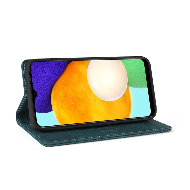 Funda de Cuero Samsung Galaxy A03S Skin Feel con Tapa Horizontal Cepillo Antirrobo Soporte (Azul)