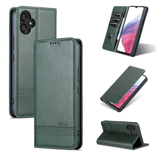 Funda para Teléfono Samsung Galaxy A05 Azns Cuero con Tapa Textura de Becerro Magnética (Verde Oscuro)