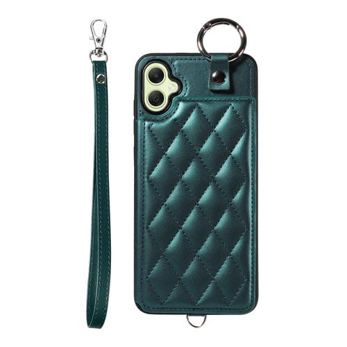Estuche para Teléfono Samsung Galaxy A05 con Bolsa para Tarjetas Textura Rómbica y Cordón Corto (Verde)