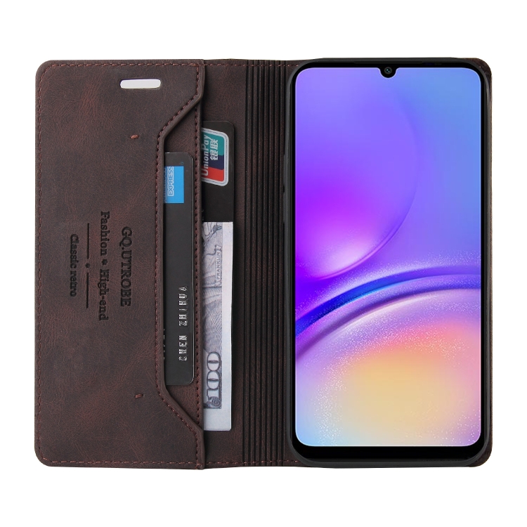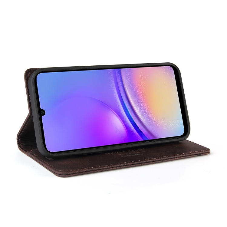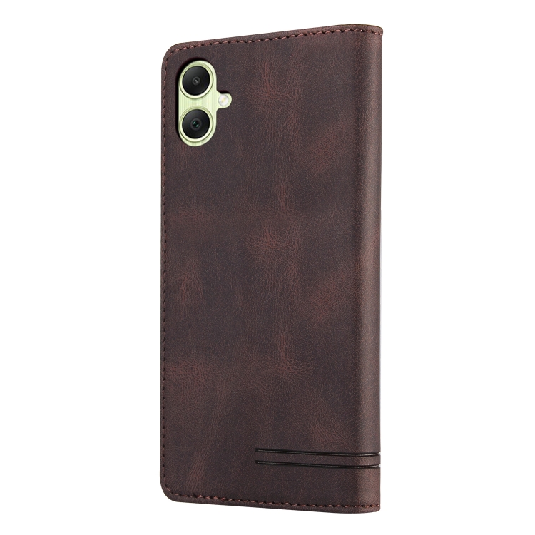 Funda de Cuero para Samsung Galaxy A05 Skin Feel con Tapa Horizontal Cepillo Antirrobo y Soporte (Marrón)