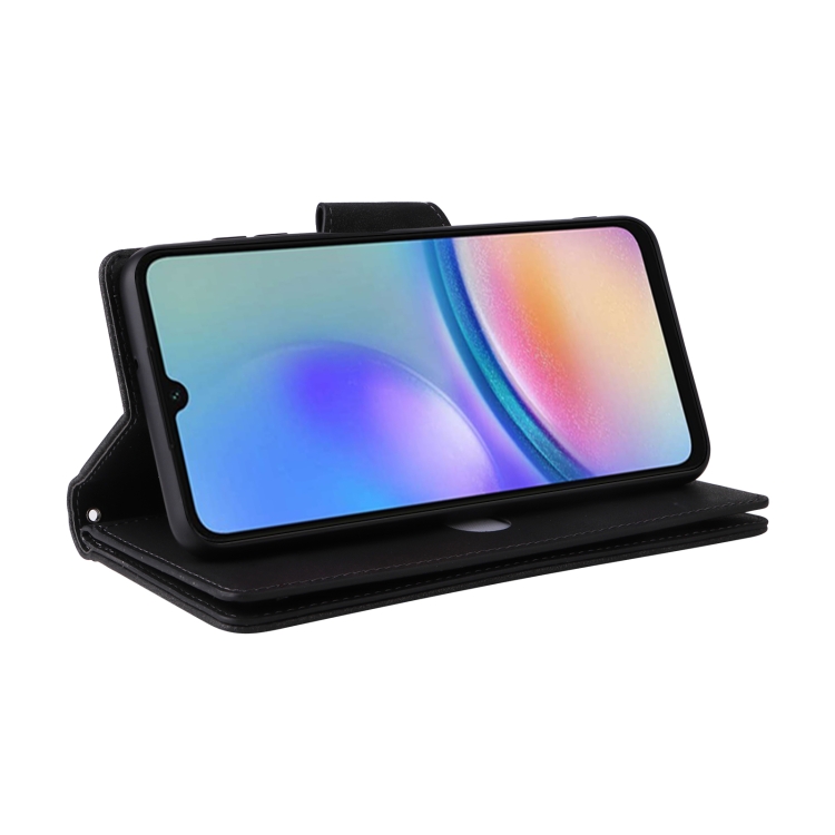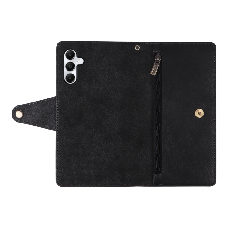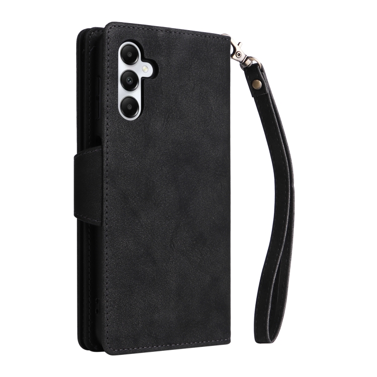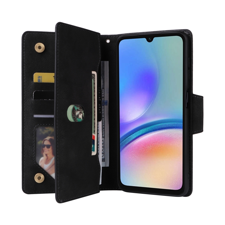 Funda de Cuero Samsung Galaxy A05S para Teléfono con Remache Hebilla y 9 Tarjetas con Tres Pliegues (Negro)