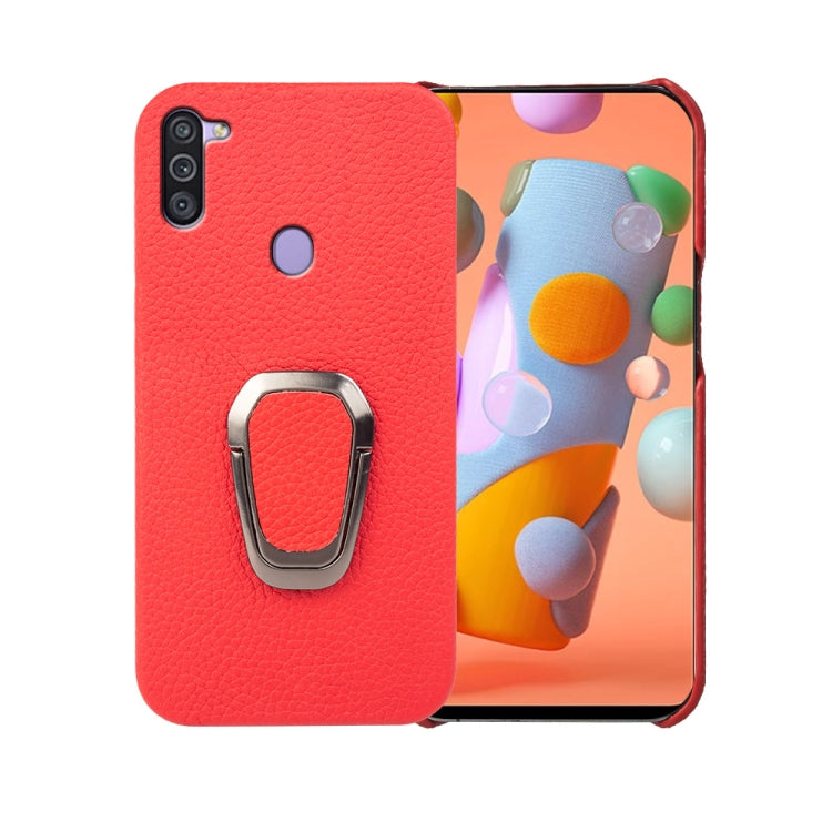 Para Samsung Galaxy A11 US Version Ring Holder Litchi Texture Funda de teléfono de cuero genuino (Rojo)