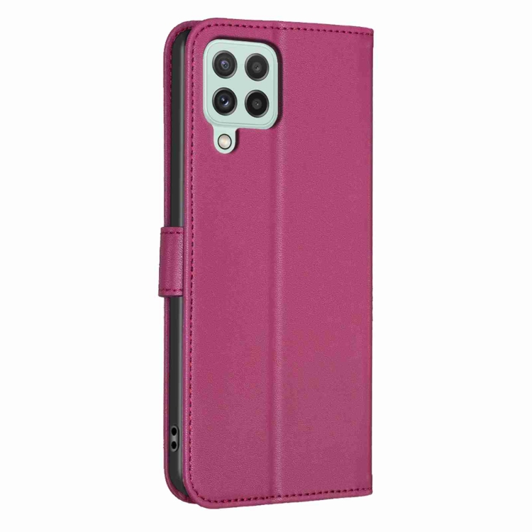 Funda de Cuero Samsung Galaxy A12 con Relieve de Cuatro Hojas (Rojo Rosa)