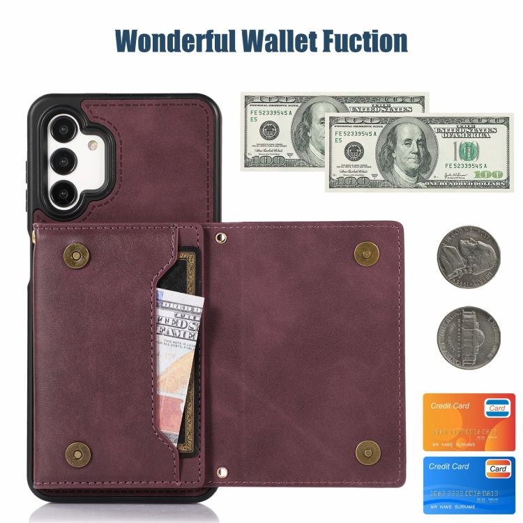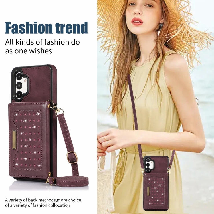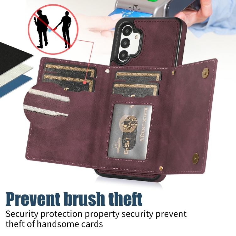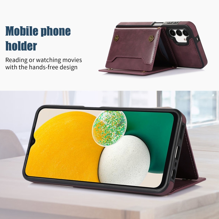 Estuche de Teléfono Samsung Galaxy A13 4G/A13 5G Cuero Rfid Tres Pliegues con Cordón (Rojo)
