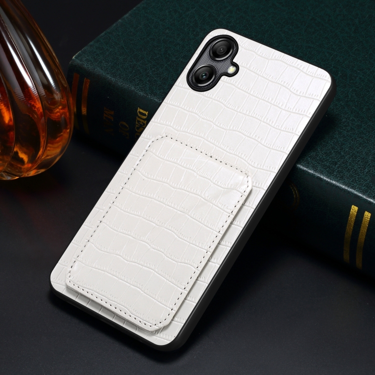 Funda Trasera Denior para Samsung Galaxy A14 4G y 5G de Piel de Cocodrilo con Soporte (Blanco)