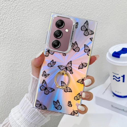 Estuche para Teléfono Samsung Galaxy A14 5G con Soporte para Anillo de Mariposa Láser con Galvanoplastia (Negro)