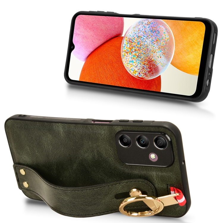 Funda Trasera de Cuero para Samsung Galaxy A15 4G con Pulsera (Verde)