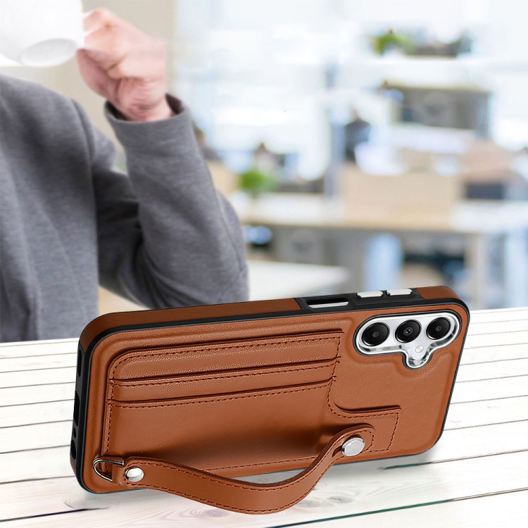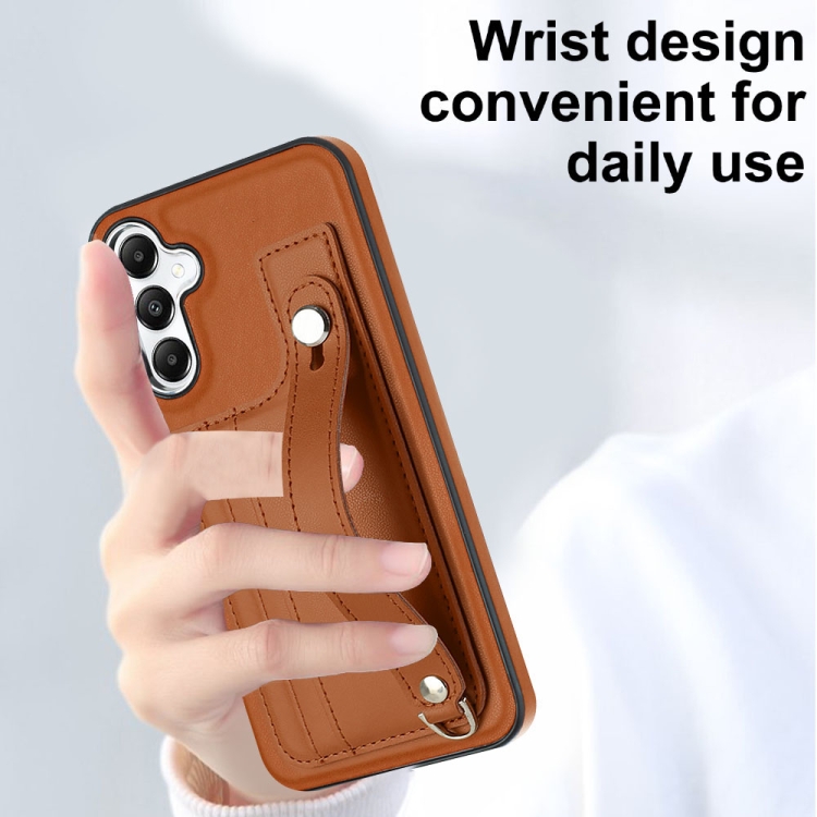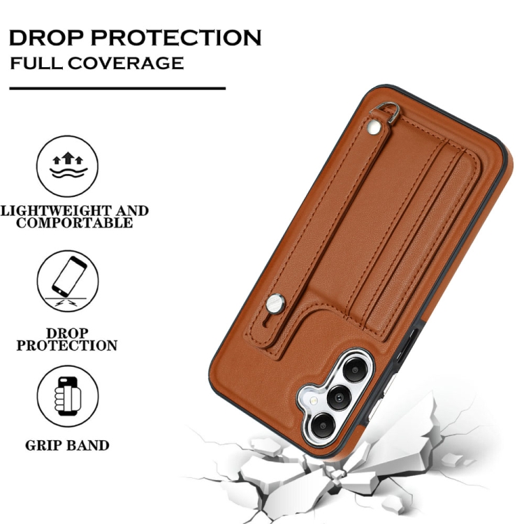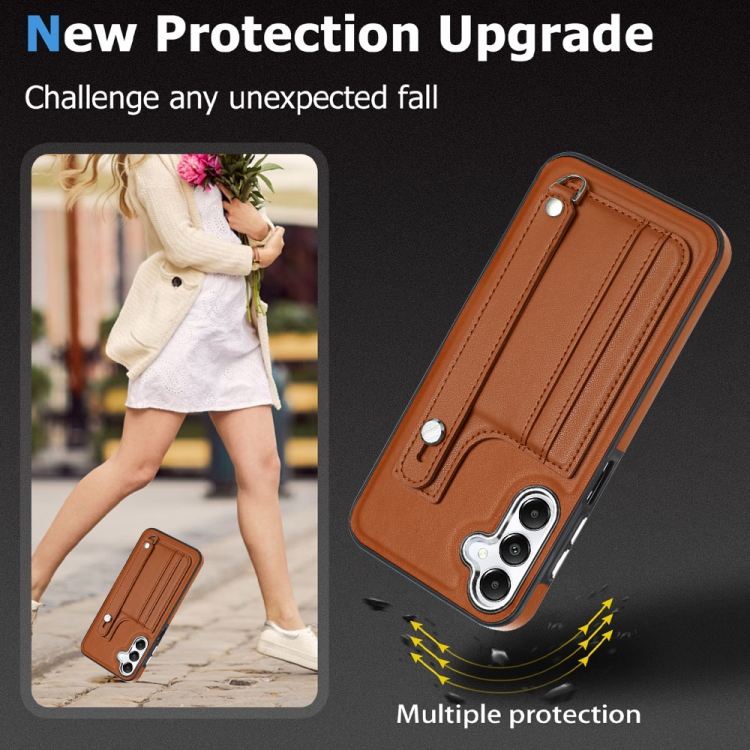 Funda para Samsung Galaxy A15 Cuero a Prueba de Golpes con Correa para Muñeca (Marrón)