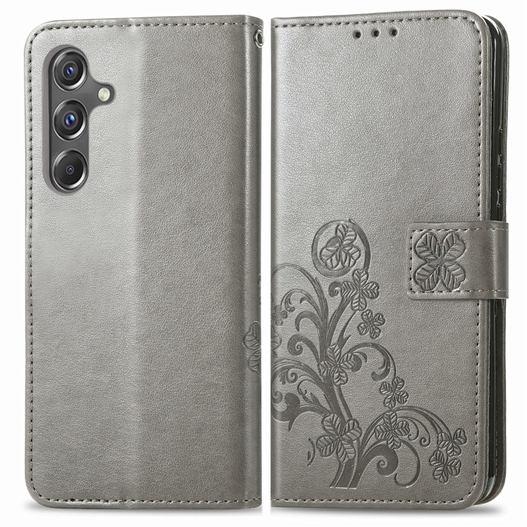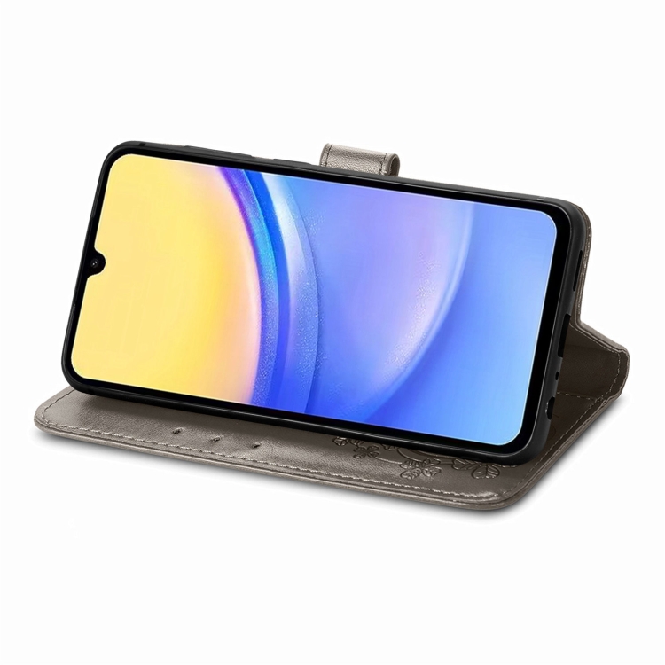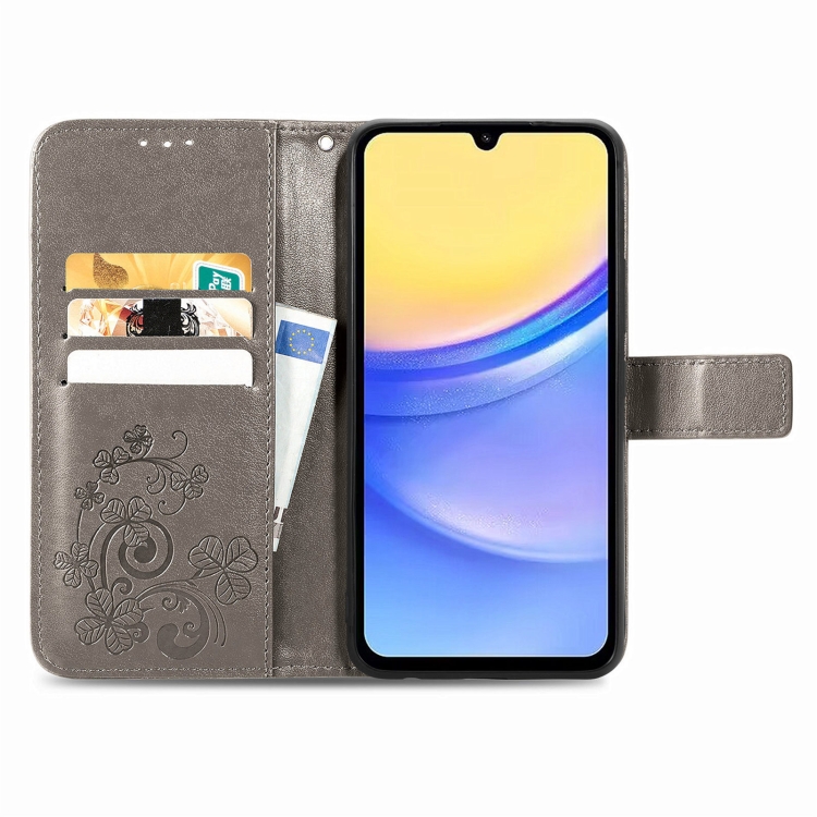 Funda para Teléfono Samsung Galaxy A15 Cuero Hebilla En Relieve Cierre Cuatro Hojas (Gris)