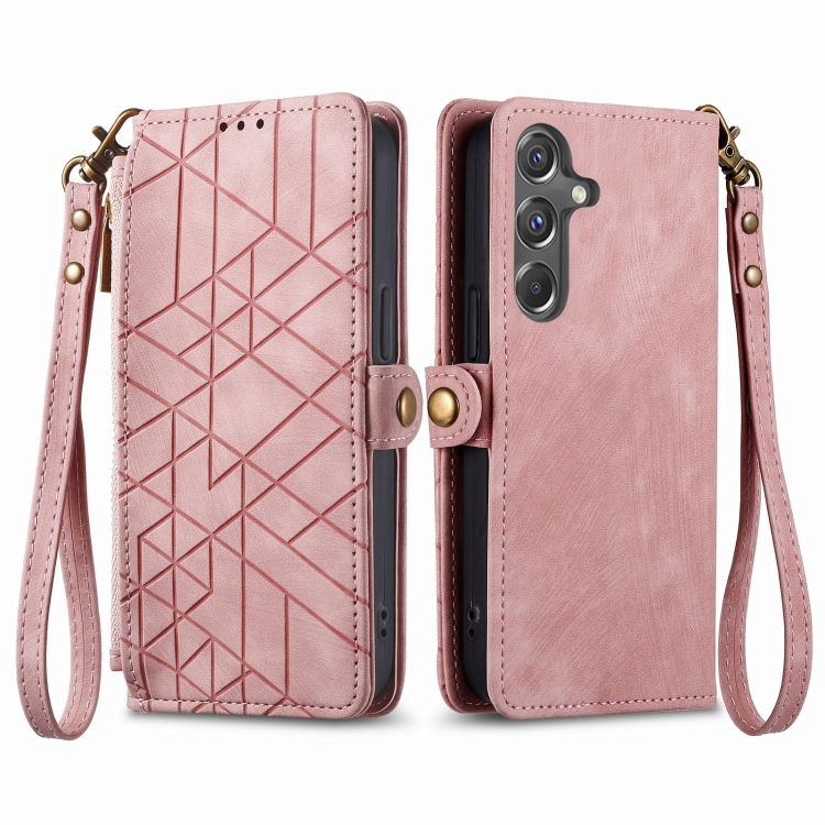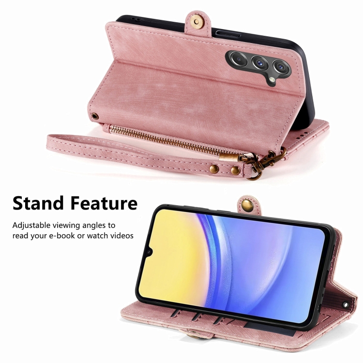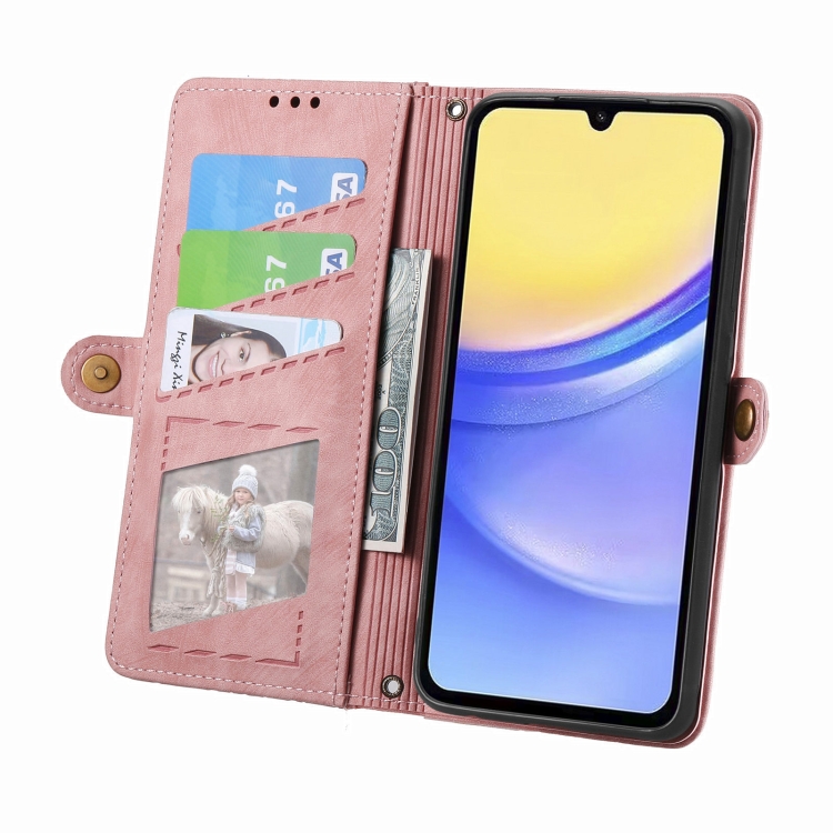 Funda para Teléfono Samsung Galaxy A15 Cuero con Hebilla Lateral y Billetera con Cremallera (Rosa)