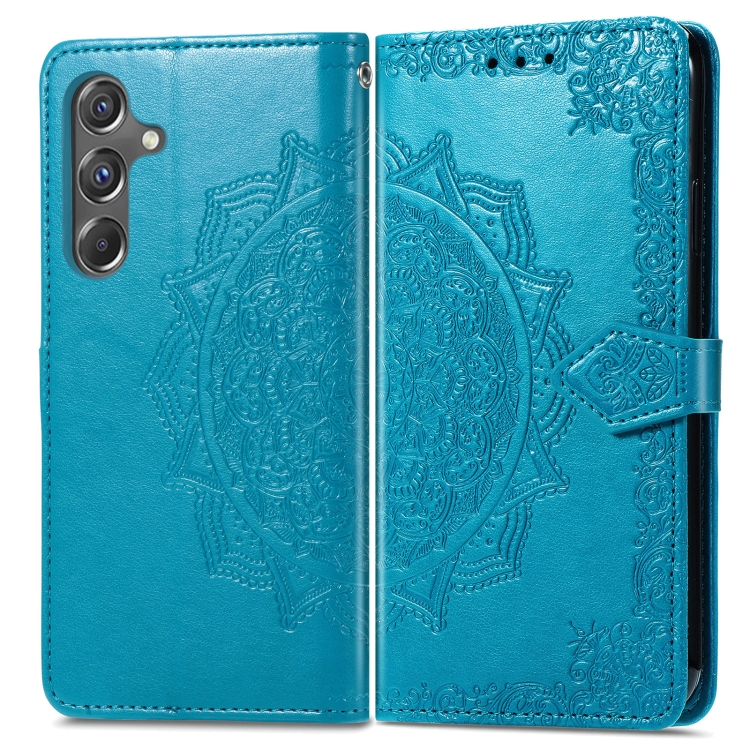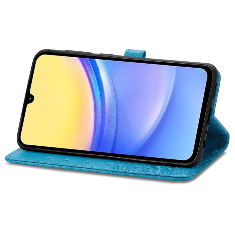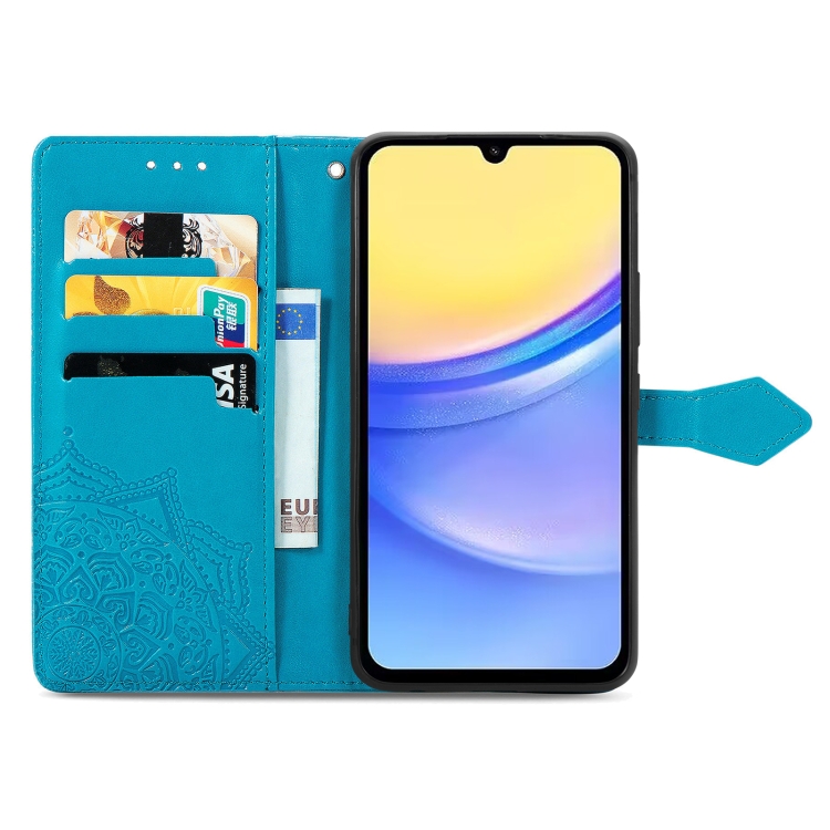 Funda para Teléfono Samsung Galaxy A15 Cuero con Relieve de Flores Mandala (Azul)