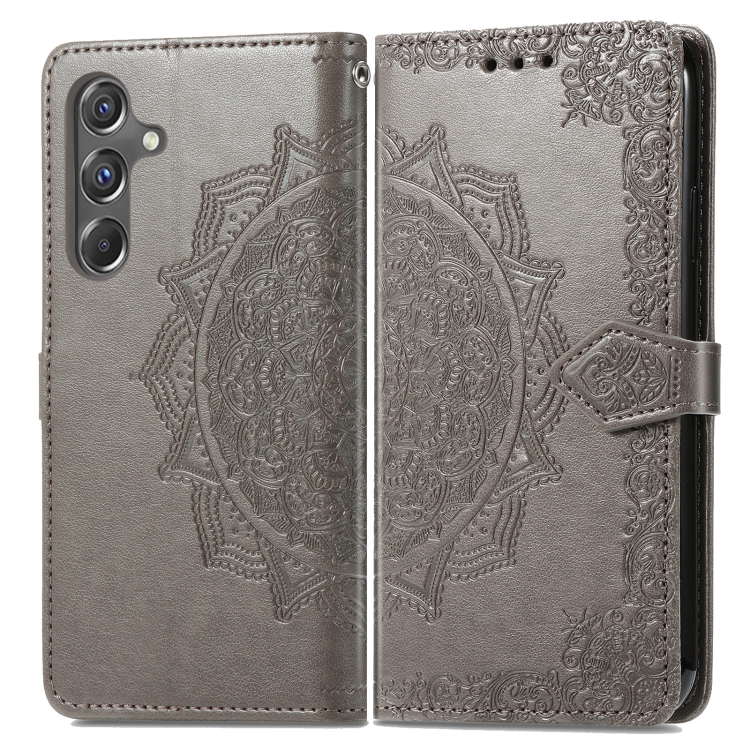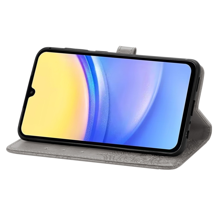 Funda para Teléfono Samsung Galaxy A15 Cuero Relieve Flores Mandala (Gris)