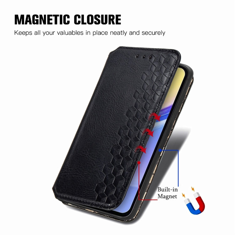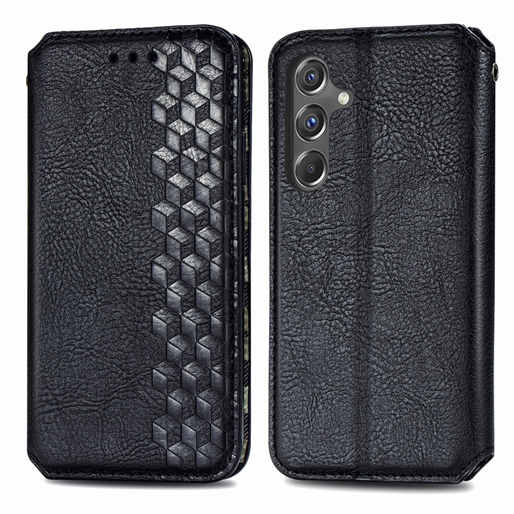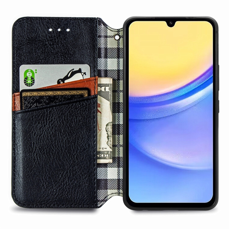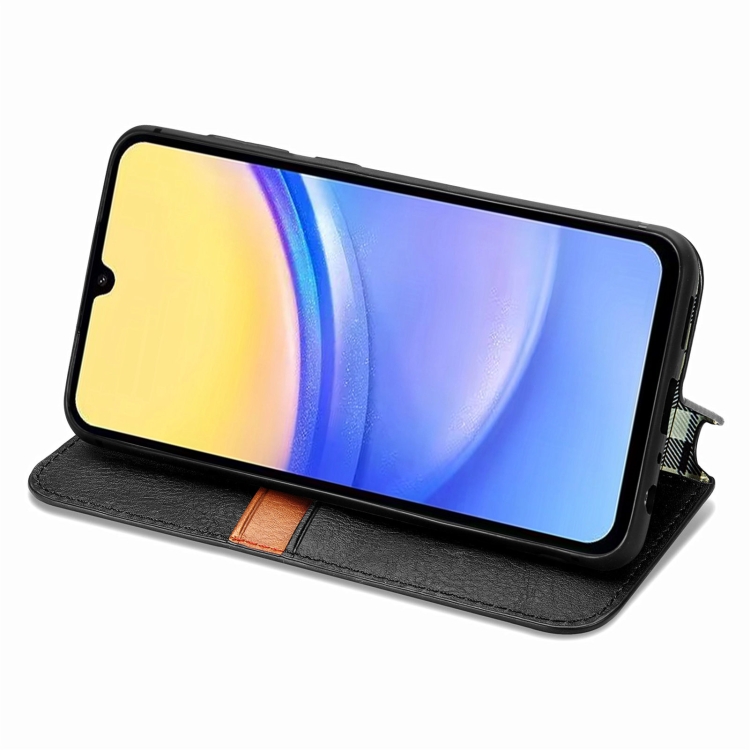 Funda para Teléfono Samsung Galaxy A15 Cuero Magnético Prensado Rejilla Cúbica (Negro)