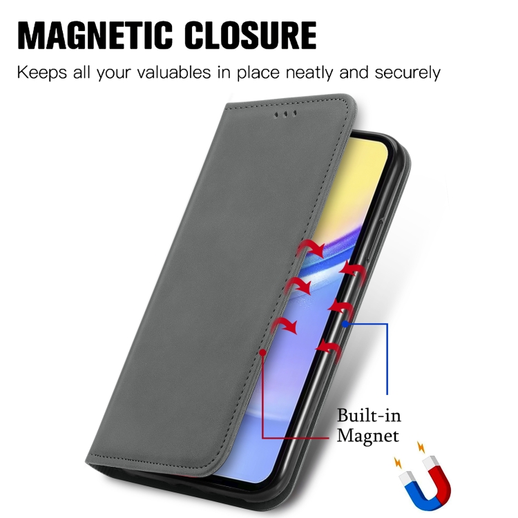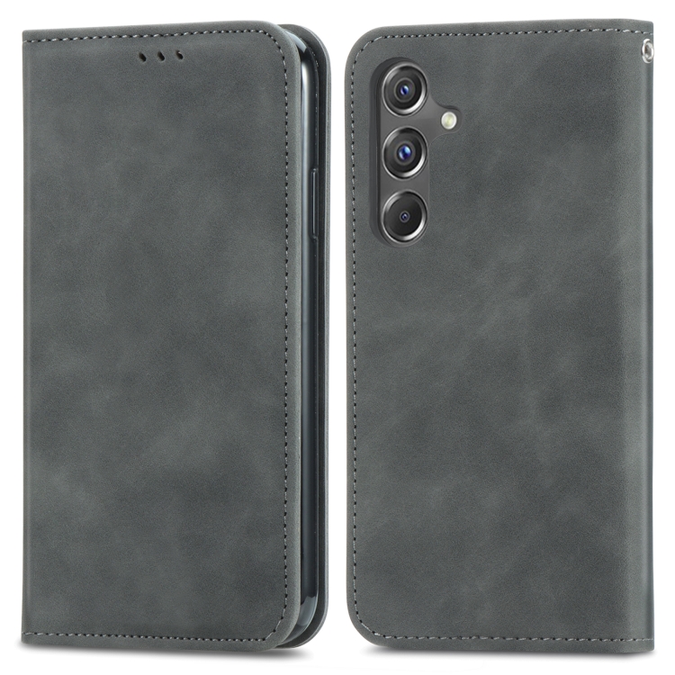 Funda para Samsung Galaxy A15 Retro Skin Feel Cuero Magnética (Gris)