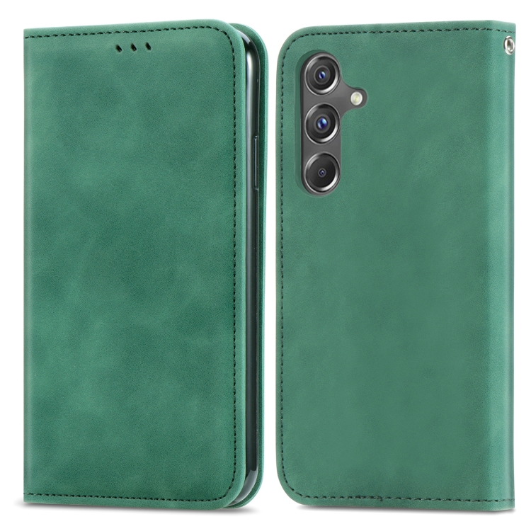 Funda para Samsung Galaxy A15 Retro Skin Feel Cuero Magnética (Verde)