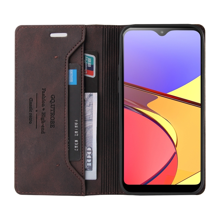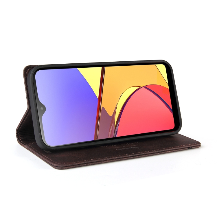 Funda de Cuero Samsung Galaxy A20 A21 Versión Jp con Tapa Horizontal Cepillo Antirrobo Soporte (Marrón)
