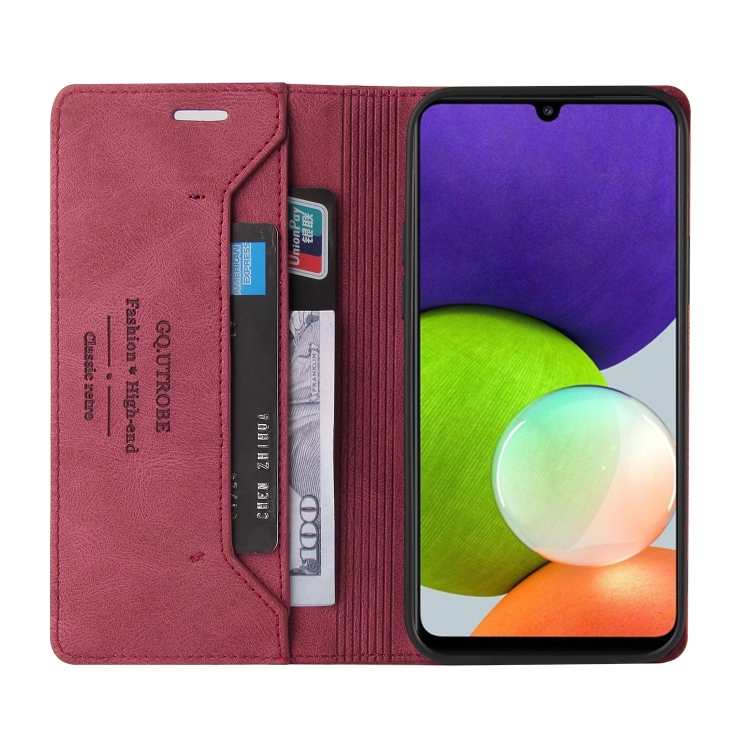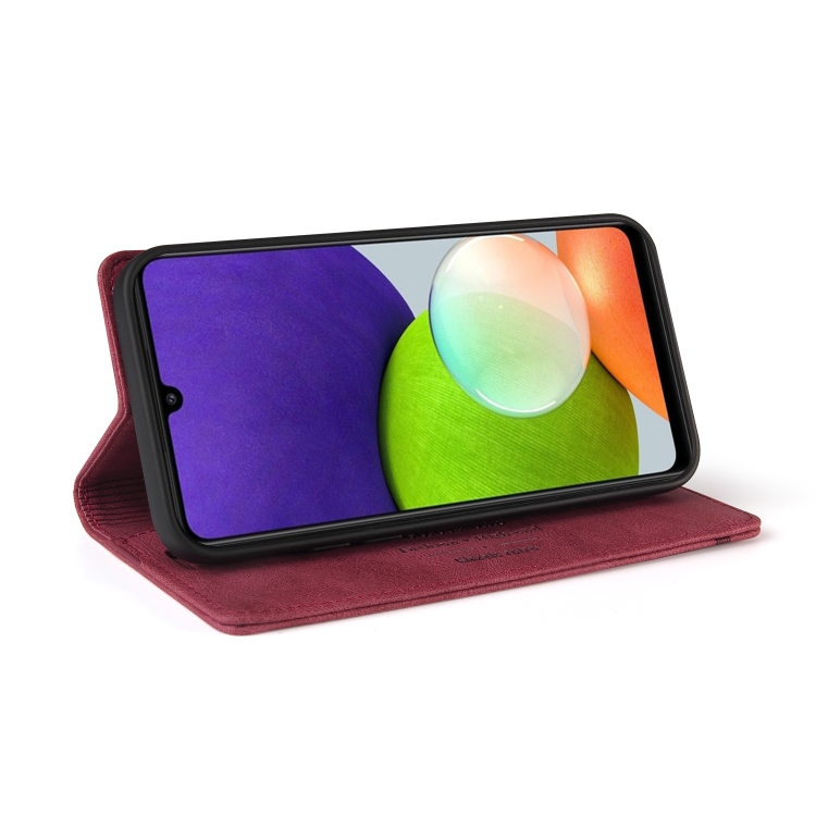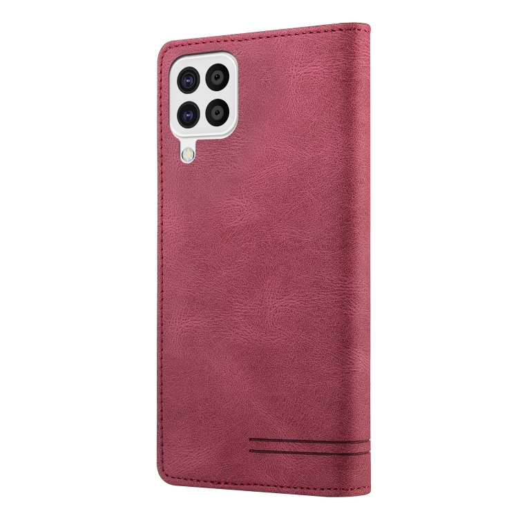 Funda de Cuero para Samsung Galaxy A22 4G Skin Feel con Tapa Horizontal Cepillo Antirrobo y Soporte (Rojo Vino)