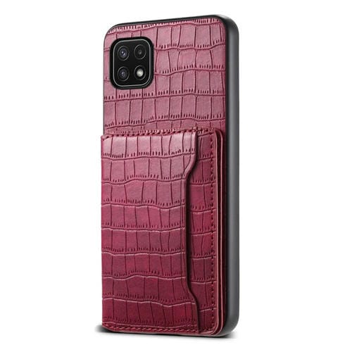 Funda para Teléfono Samsung Galaxy A22 5G Diseño Bolsa para Tarjetas Textura Cocodrilo (Rojo)