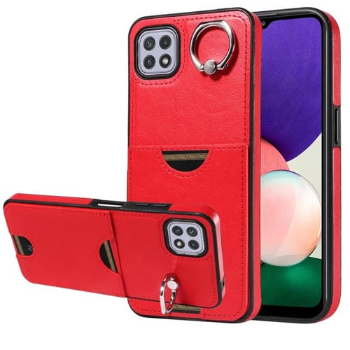 Funda para Teléfono Samsung Galaxy A22 5G con Soporte para Anillo y Ranura para Tarjeta (Rojo)