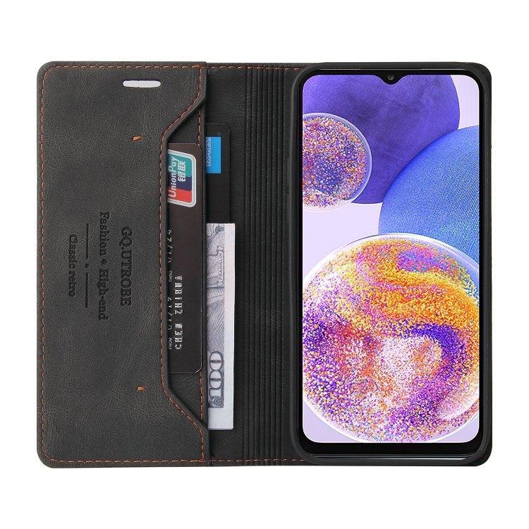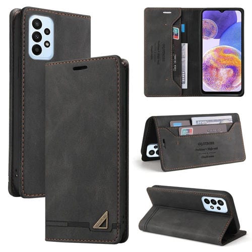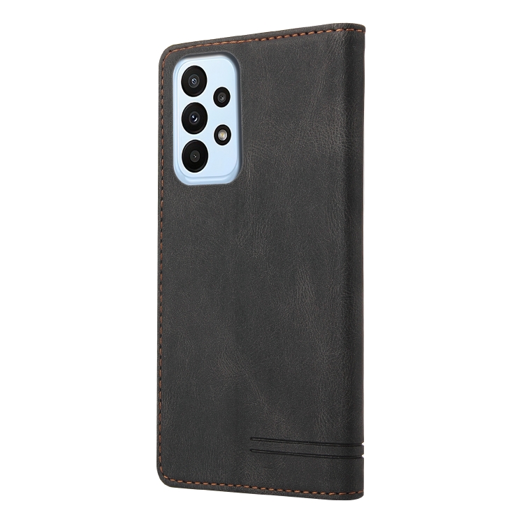 Funda de Cuero para Samsung Galaxy A23 Skin Feel con Tapa Horizontal Cepillo Antirrobo y Soporte (Negro)