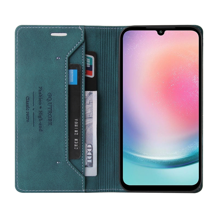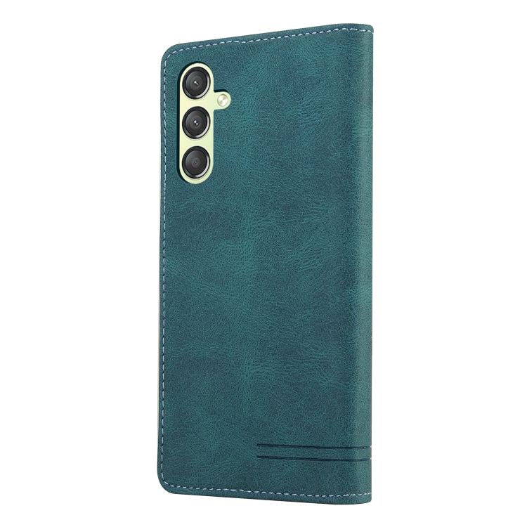 Funda de Cuero para Samsung Galaxy A24 5G Skin Feel con Tapa Horizontal Cepillo Antirrobo y Soporte (Azul)