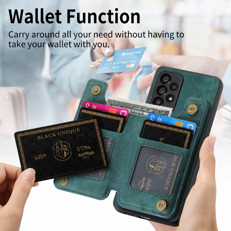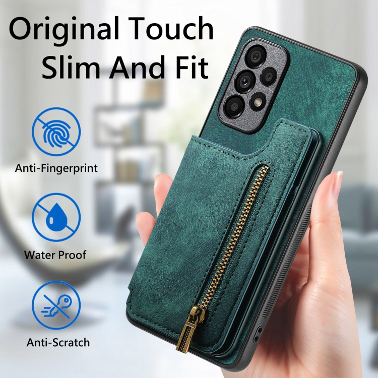 Estuche para teléfono Samsung Galaxy A30 A20 M10S con billetera y cremallera de cuero (Verde)