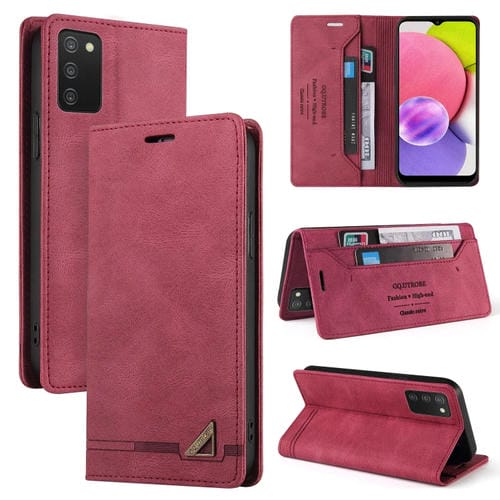 Funda de Cuero Samsung Galaxy A30 Versión Jp Skin Feel con Tapa Horizontal Cepillo Antirrobo Soporte (Rojo Vino)