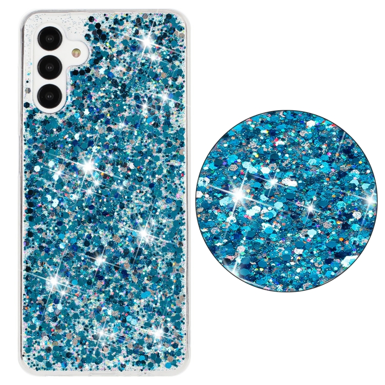 Estuche para Samsung Galaxy A34 5G Transparente con Purpurina en Polvo de TPU (Azul)