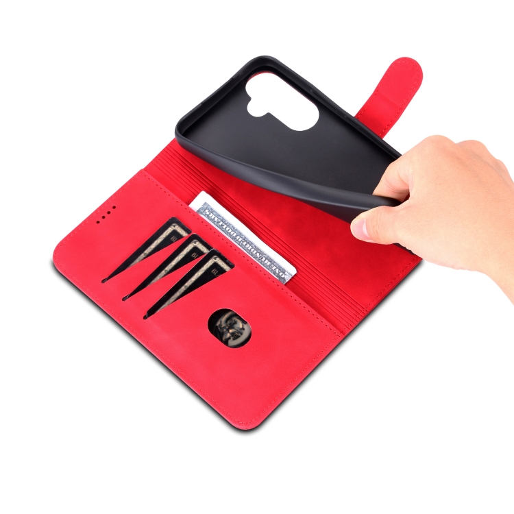Funda para Samsung Galaxy A35 5G Azns Skin Feel Calf Texture con Tapa (Rojo)