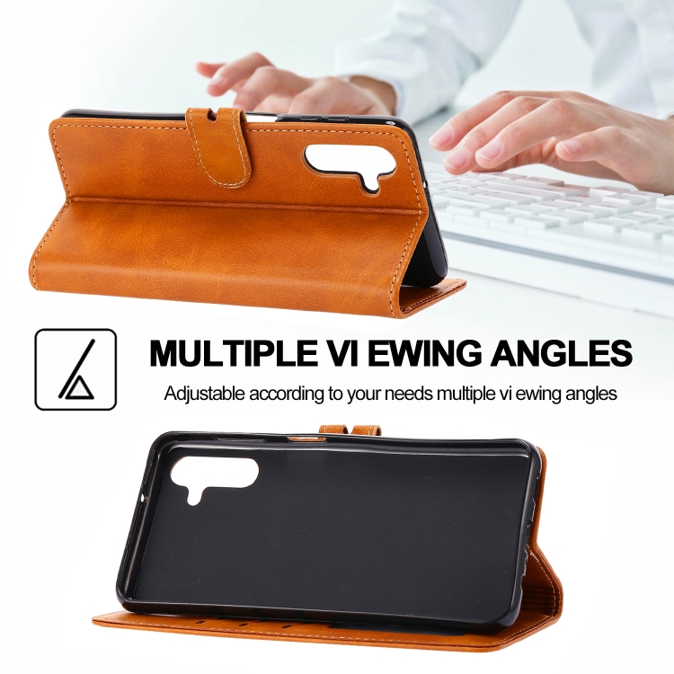 Funda para Teléfono Samsung Galaxy A35 5G Cuero con Tapa Patrón Gato Feliz (Amarillo)
