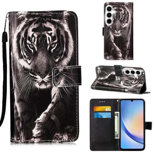 Funda para Teléfono Samsung Galaxy A35 5G Cuero Tejido Liso Patrón Tigre Blanco y Negro
