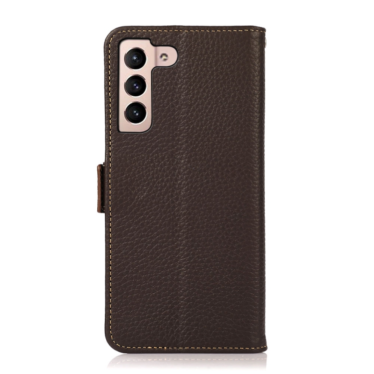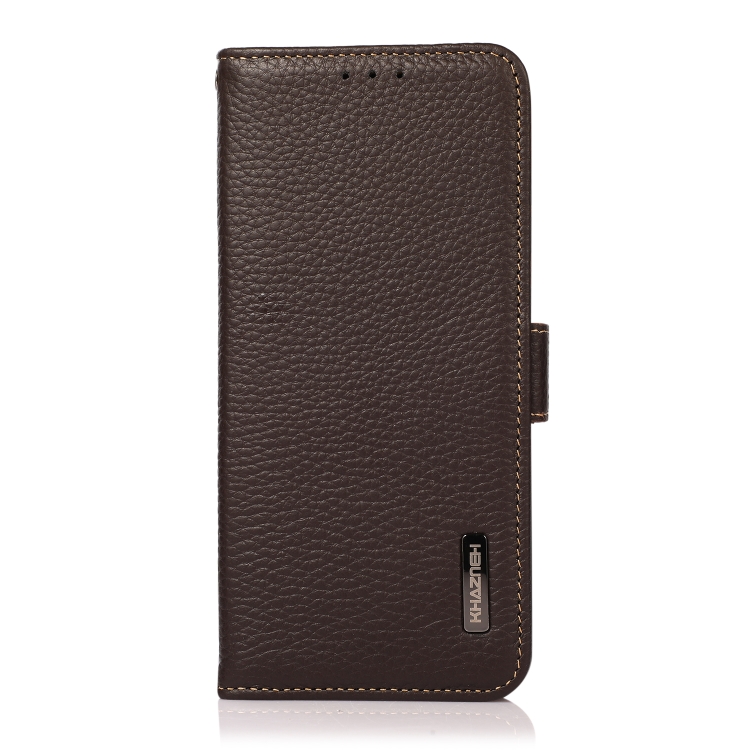 Funda para Teléfono Samsung Galaxy A35 5G Khazneh Cuero Genuino Litchi Lateral Magnético (Marrón)
