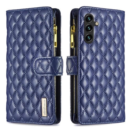 Funda de Cuero Samsung Galaxy A35 Diamond Lattice Zipper Wallet con Tapa (Azul)