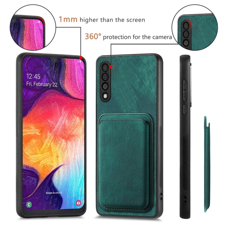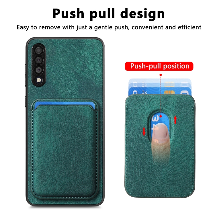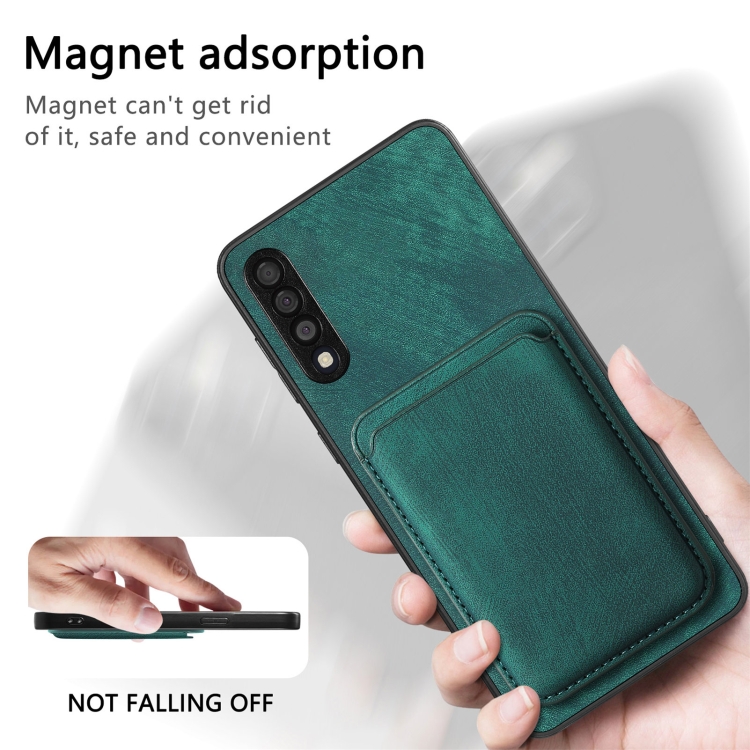 Funda de teléfono Samsung Galaxy A50S magnética con bolsa de tarjeta de cuero retro (Verde)