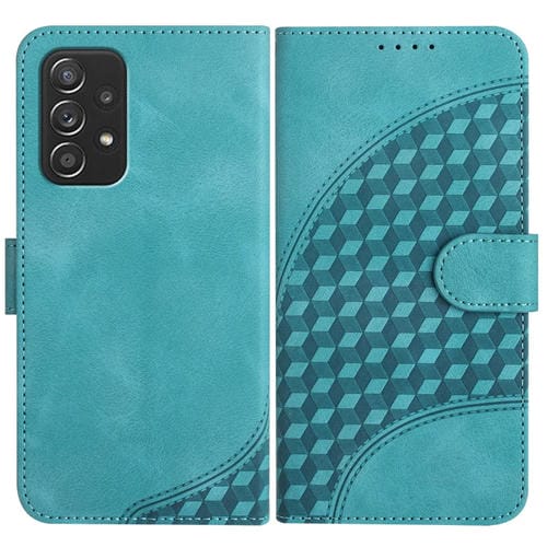 Funda de Cuero Samsung Galaxy A52 4G 5G Yx0060 con Relieve y Cabeza de Elefante con Cordón (Azul Claro)