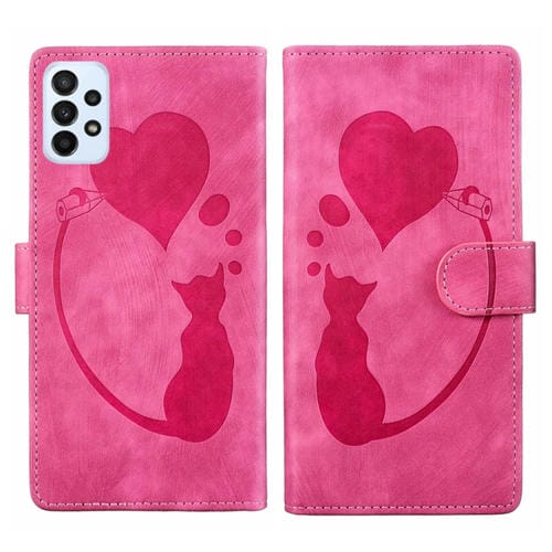 Estuche para Teléfono Samsung Galaxy A52 5G A52S 5G Cuero Relieve Gato Corazón con Bolígrafo (Rosa)