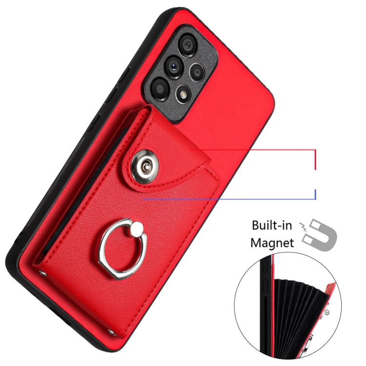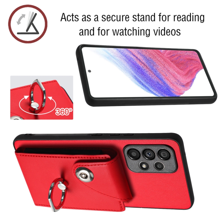 Funda para Teléfono Samsung Galaxy A52 5G de PU con Soporte para Anillo y Bolsa para Tarjeta (Rojo)