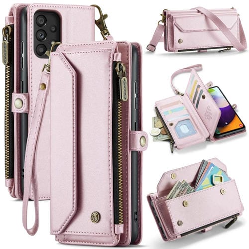 Funda cartera para Samsung Galaxy A52 A52S 5G Caseme C36 con ranuras para tarjetas y cremallera RFID (Rosa)