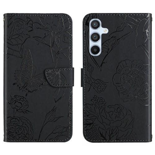 Funda de Cuero para Samsung Galaxy A55 5G Skin Feel Butterfly con Tapa En Relieve (Negro)