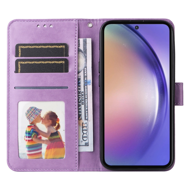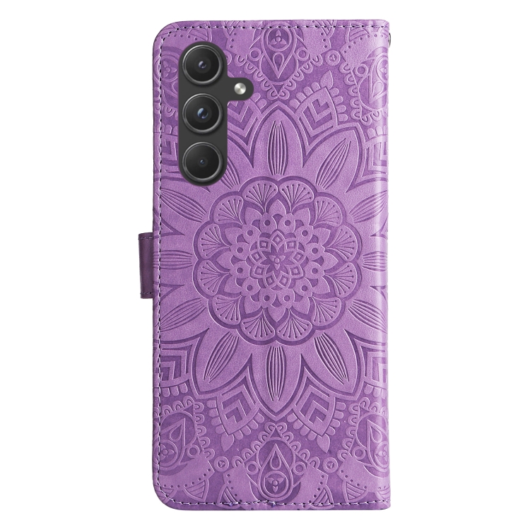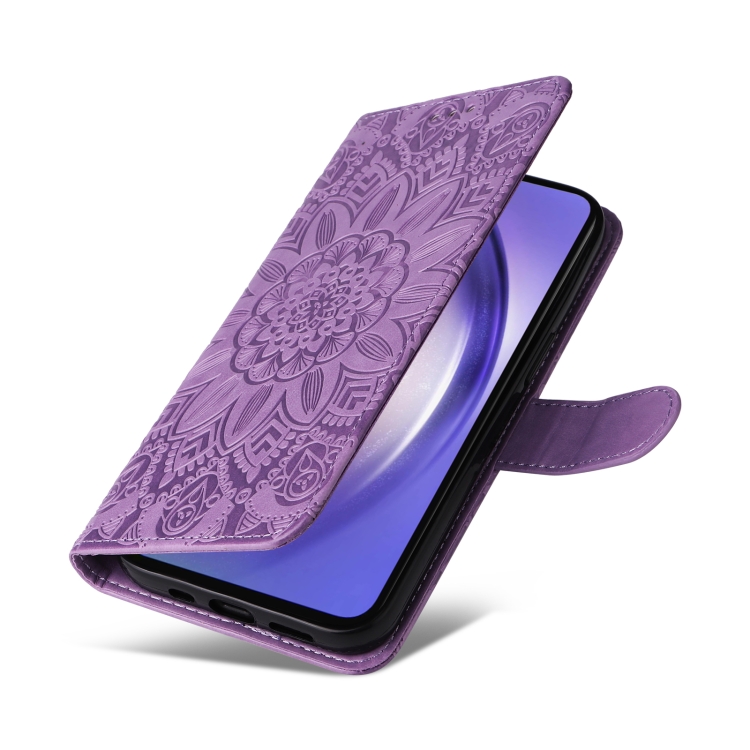 Funda para Samsung Galaxy A55 Cuero con Girasol en Relieve (Púrpura)