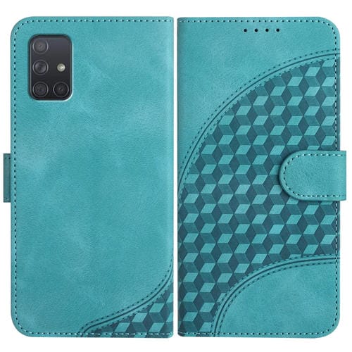 Funda para Samsung Galaxy A71 4G Yx0060 de Cuero con Relieve y Cabeza de Elefante con Cordón (Azul Claro)